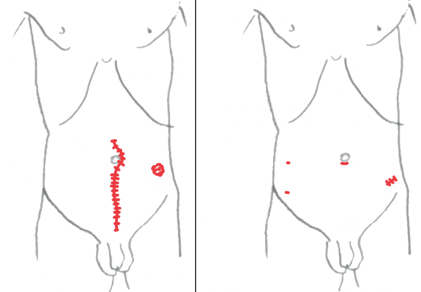 Incisie laparoscopisch sigmoid resectie rechts zonder stoma